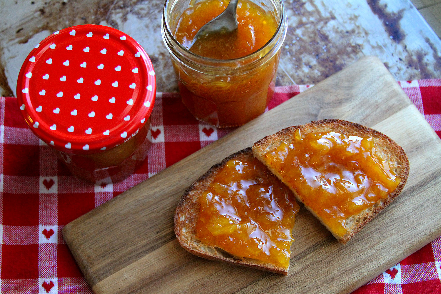 It’s winter. There isn’t that much fresh fruit around. OK, that’s a fib. There is a lot of fruit around, we don’t live in ancient times where scurvy was an actual concern, but still. Things feel a little dull right now, in the fresh fruit department. Until I made this jam and it is quite likely some of the best jam that I have ever made and I make some pretty yummy jam! I give you, in honor of Valentine’s Day, Pineapple Passion Fruit “Sunshine in a Jar” Jam. It is tart, it is sweet, it is bright and I could eat it by the spoonful. Absolutely perfect cure for the mid-Winter blues.