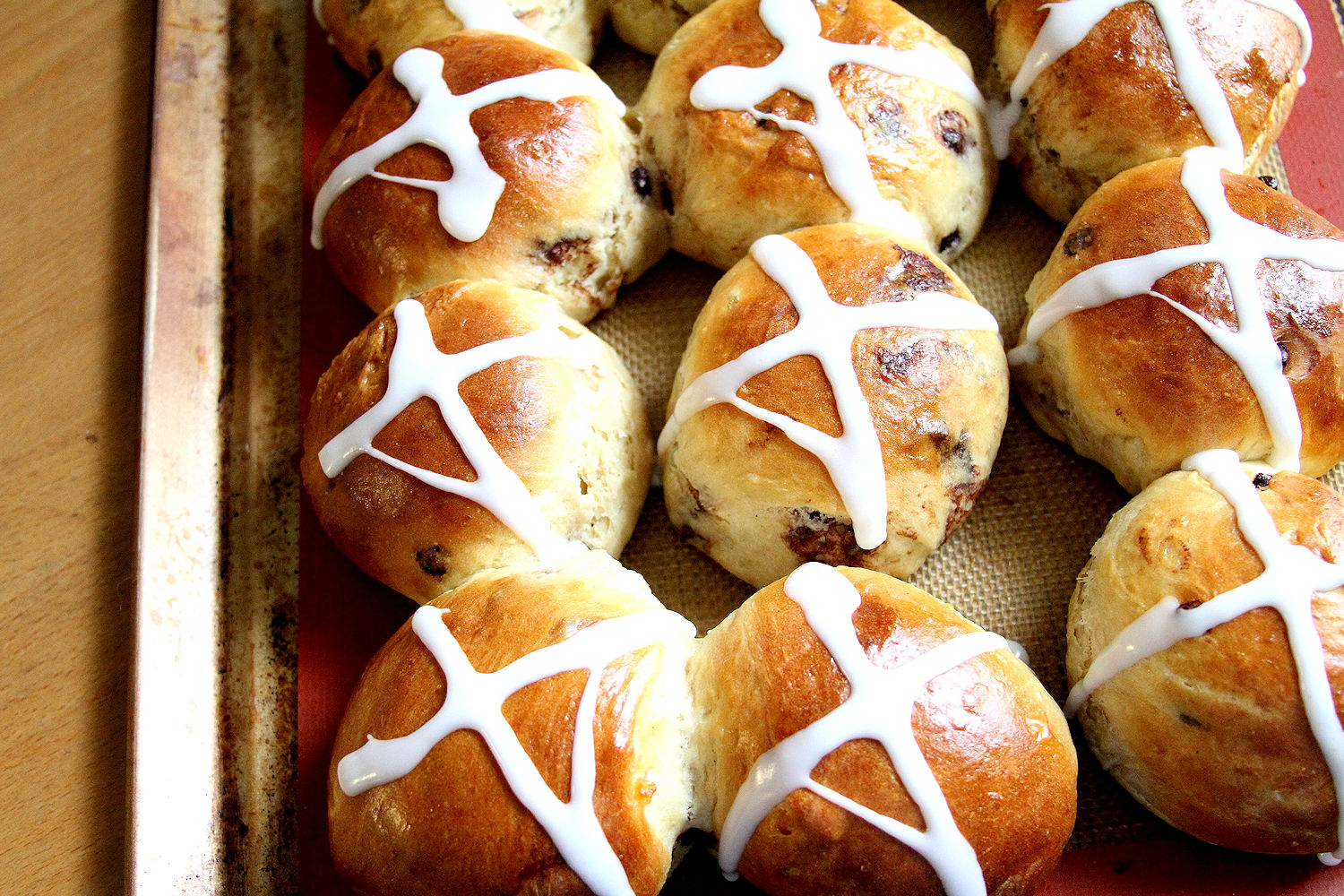 Finally, ice your hot crossed buns. Mix 1 confectioners’ sugar with milk for icing. Add icing to a small Ziploc bag and snip the corner. Make icing crosses on each roll.