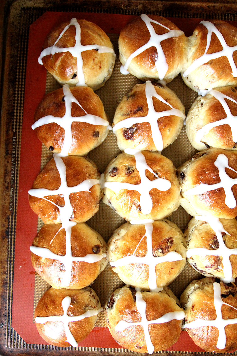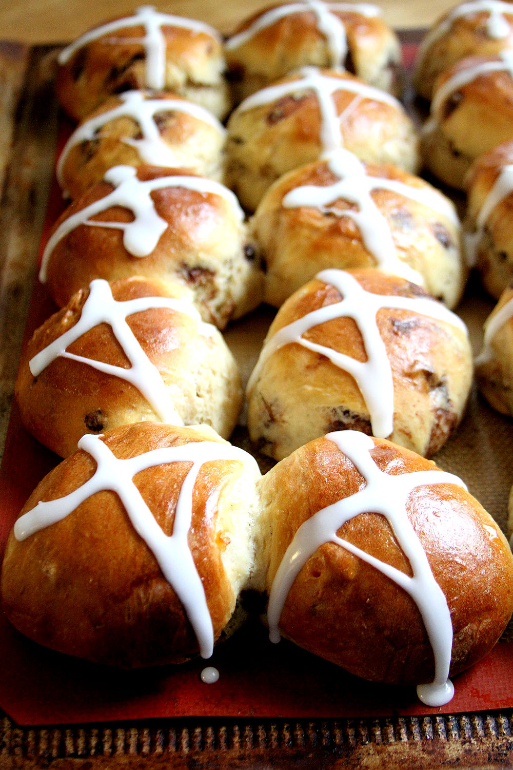 Happy Easter Weekend! I’ve got company this weekend (my mum is visiting!) which makes finding time for posting a little more complicated, but here are some delicious Apricot Chocolate Hot Cross Buns. Every year, I try to do something a little different with them, so this year, they were apricot and mini-chocolate chips, but add in your mix-ins of choice (cranberries, nuts, raisins, etc). I made them yesterday for Good Friday.