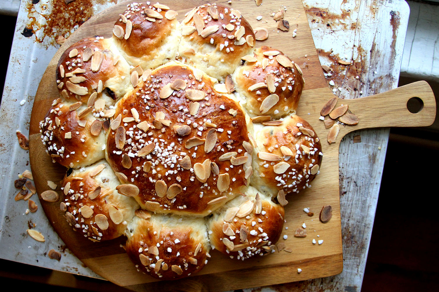 So here is my version: is a Swiss-inspired style Dreikönigskuchen made with a yeasted, or in my case, sourdough base. There is a marble in there some place and I was going to make an actual crown, but my baking skills are better than my arts & crafts skills.